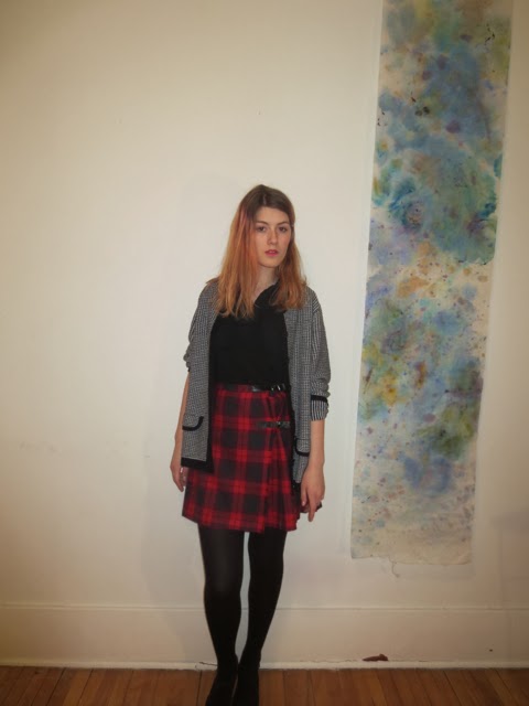 Speaking of inspiration, I went to Value Village the other day and found a few fun items to spice up my winter outfits. I'm starting to miss the summer again so I got myself a cute and colorful summer shirt. I had to find other useful clothing for the winter though. I only have green sweaters and by chance I found two cool cardigans, a monochrome one and a colorful one. My mom also found some really cute heels that I'm wearing in the pictures below.